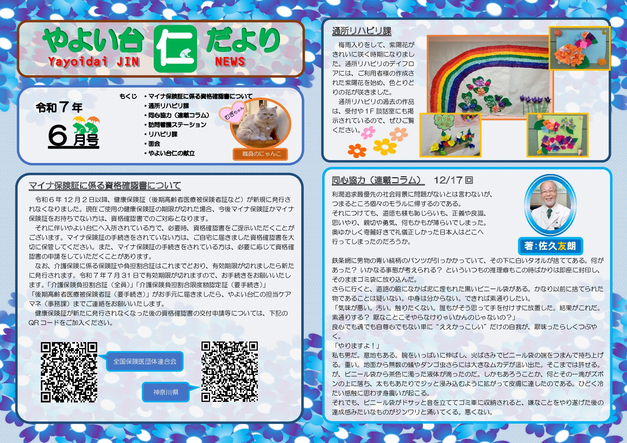 「やよい台仁だより」(令和7年6月号)を発行しました。