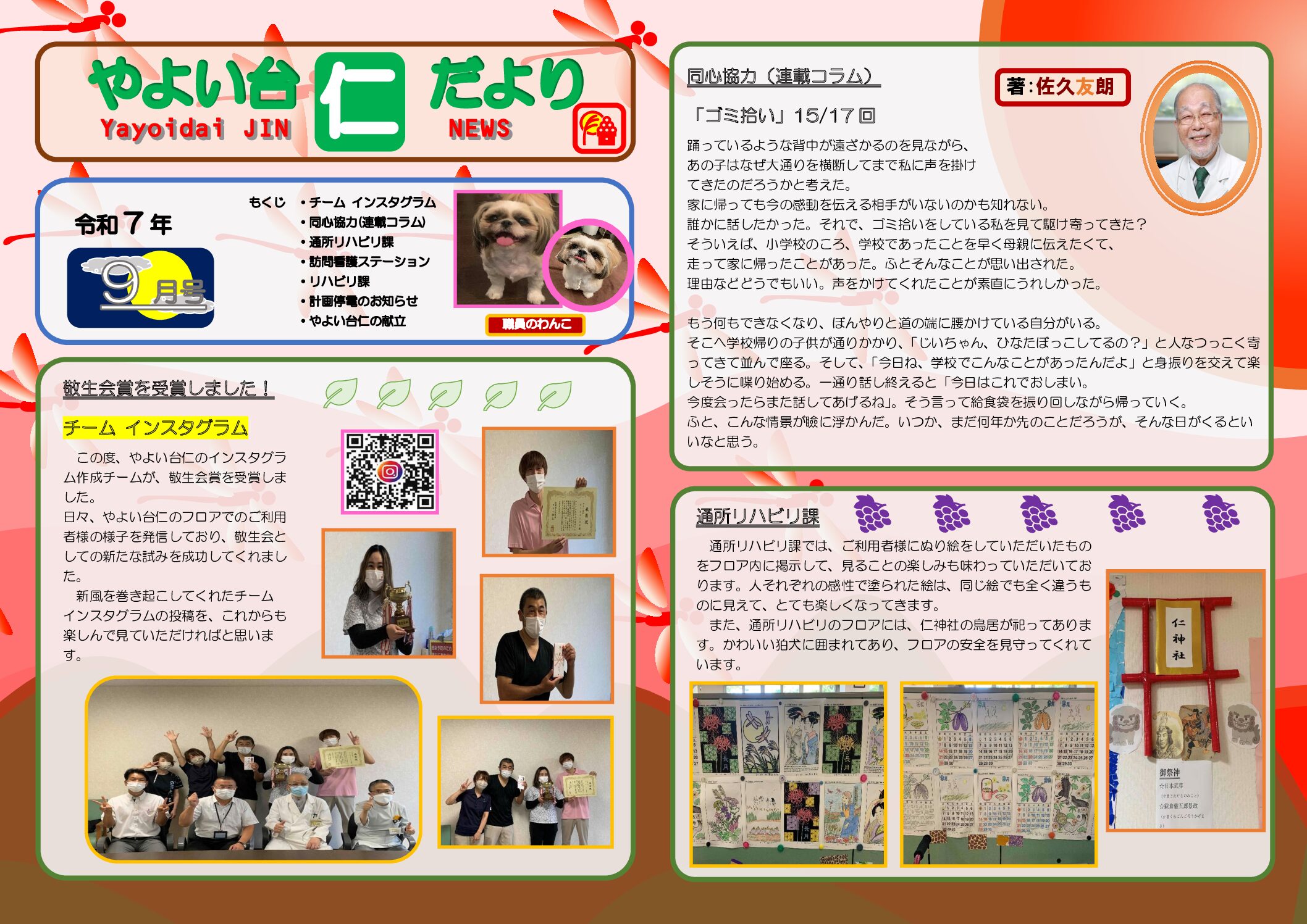 「やよい台仁だより」(令和7年9月号)を発行しました。